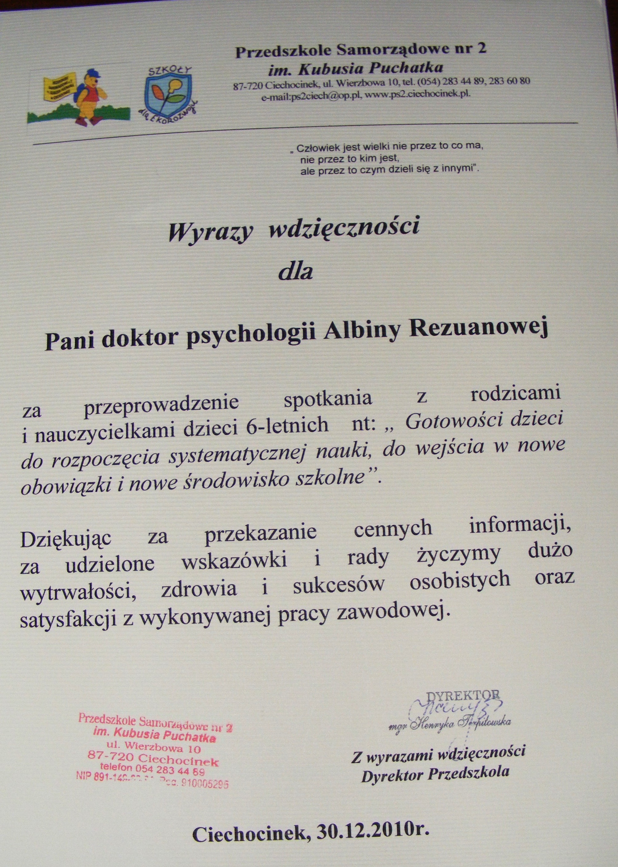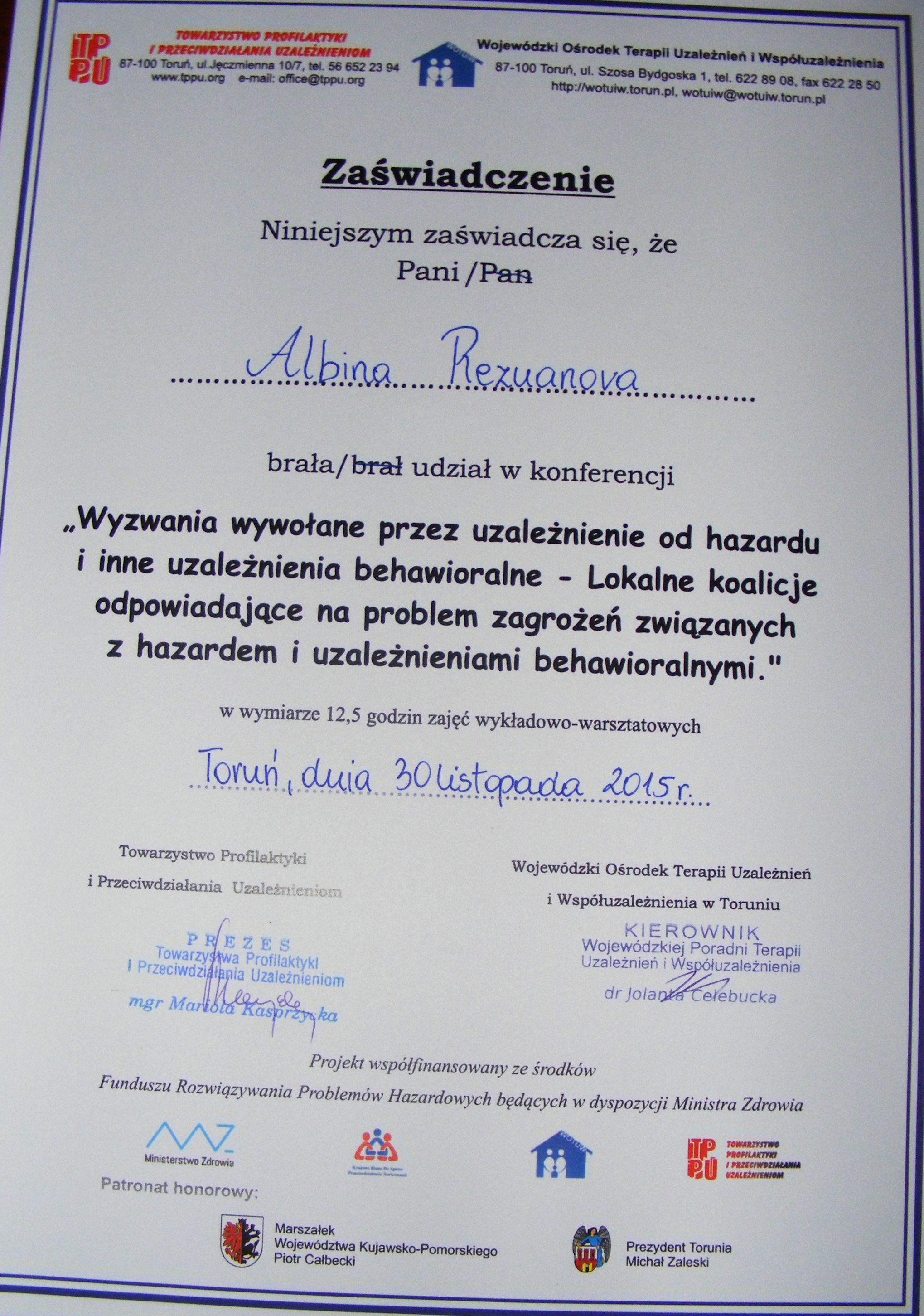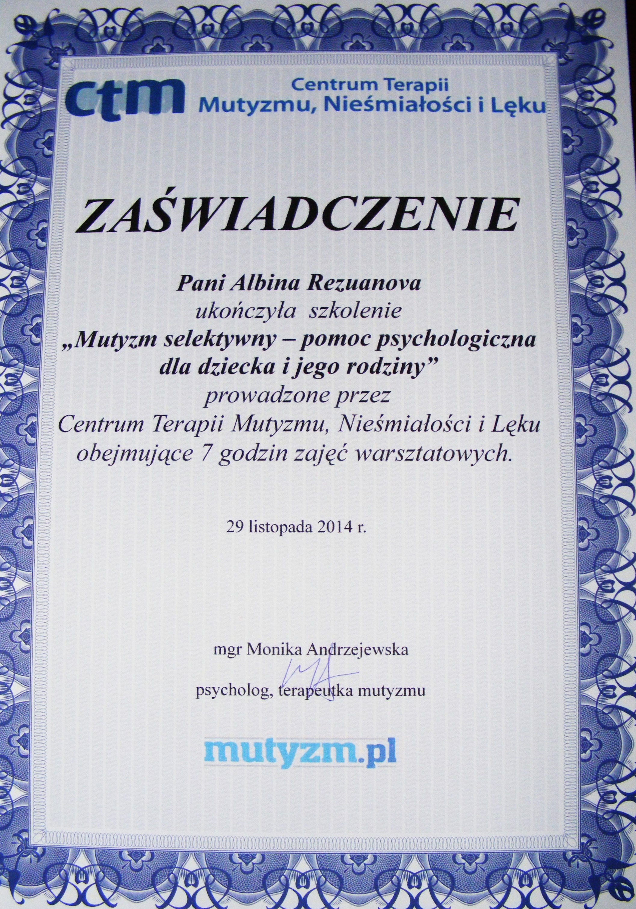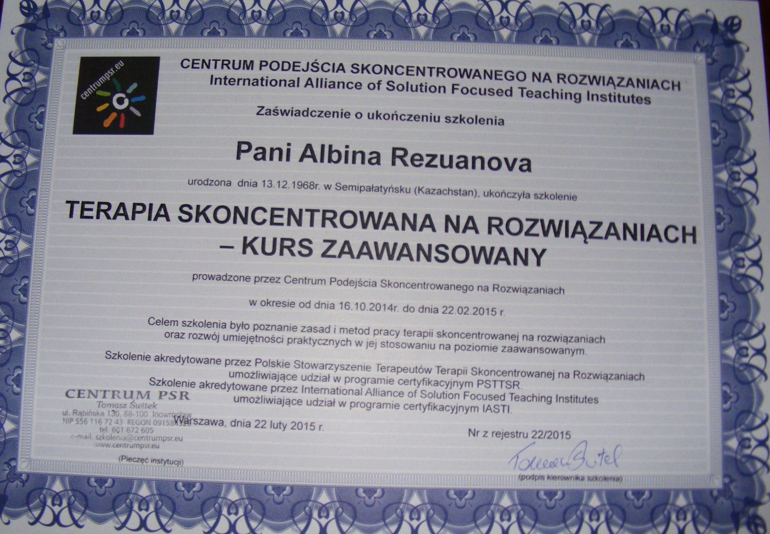 dr n. hum. z zakr. psychologii Albina Rezuanova