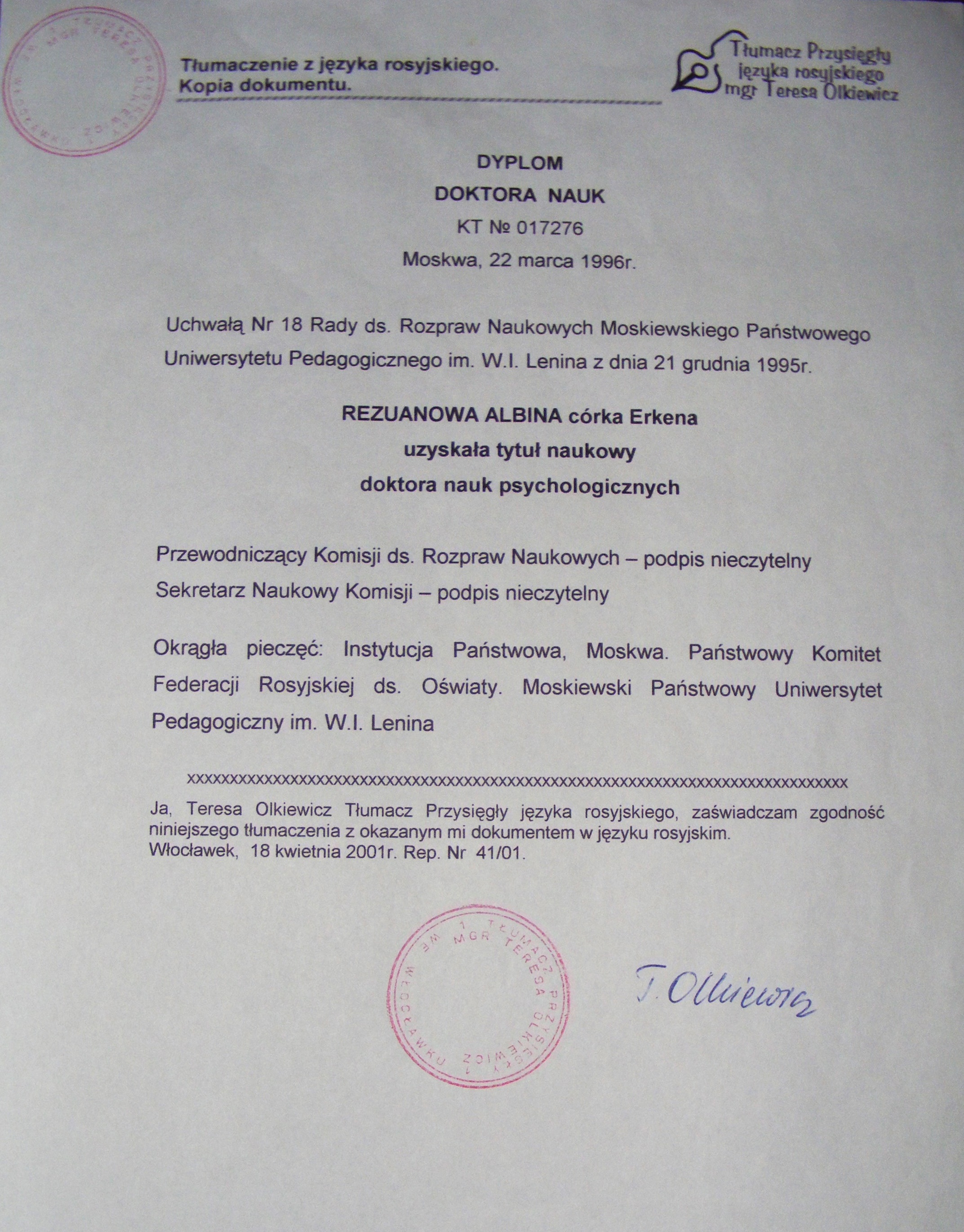 dr n. hum. z zakr. psychologii Albina Rezuanova